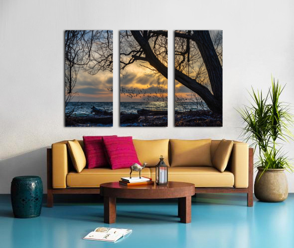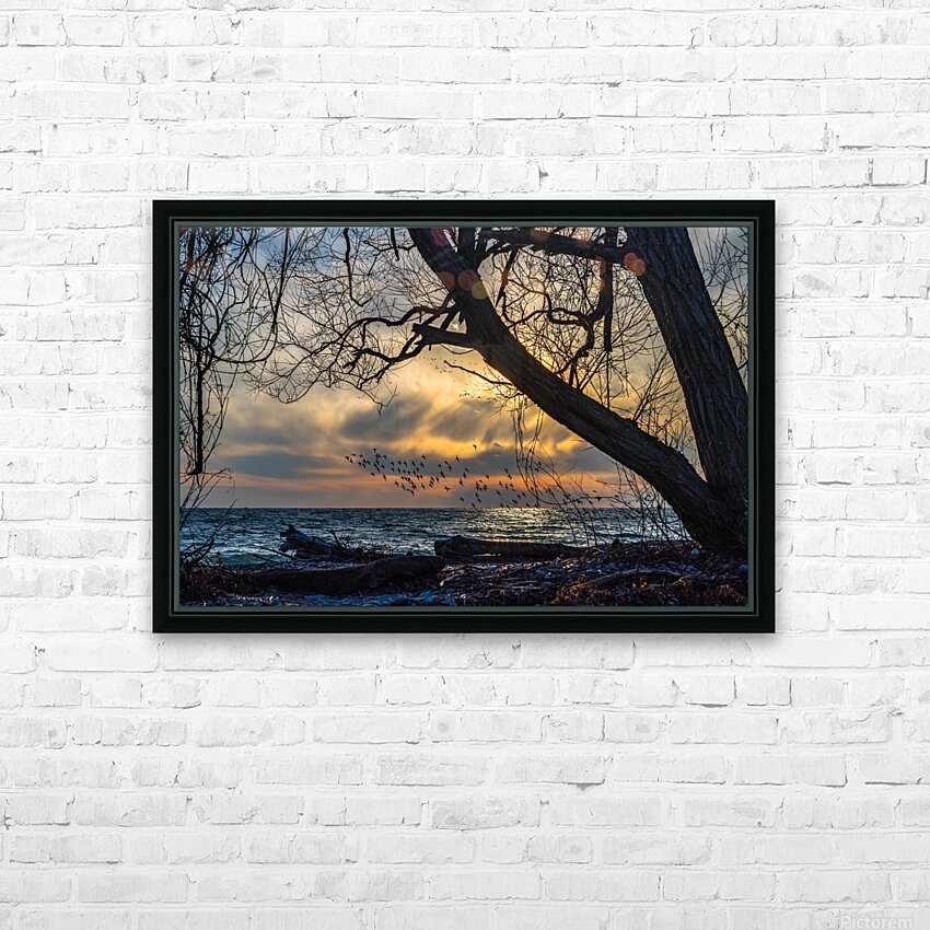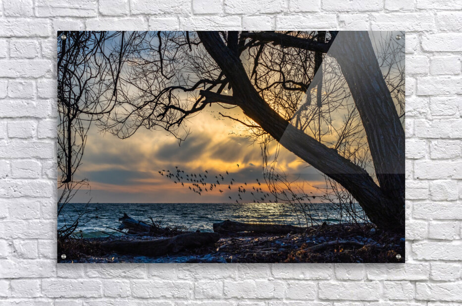 Captured while walking along the Shoreline Trail at the McLaughlin Bay Wildlife Reserve in Oshawa, Ontario, a flock of birds in graceful flight, soaring over the waters as the sun bid its farewell.
